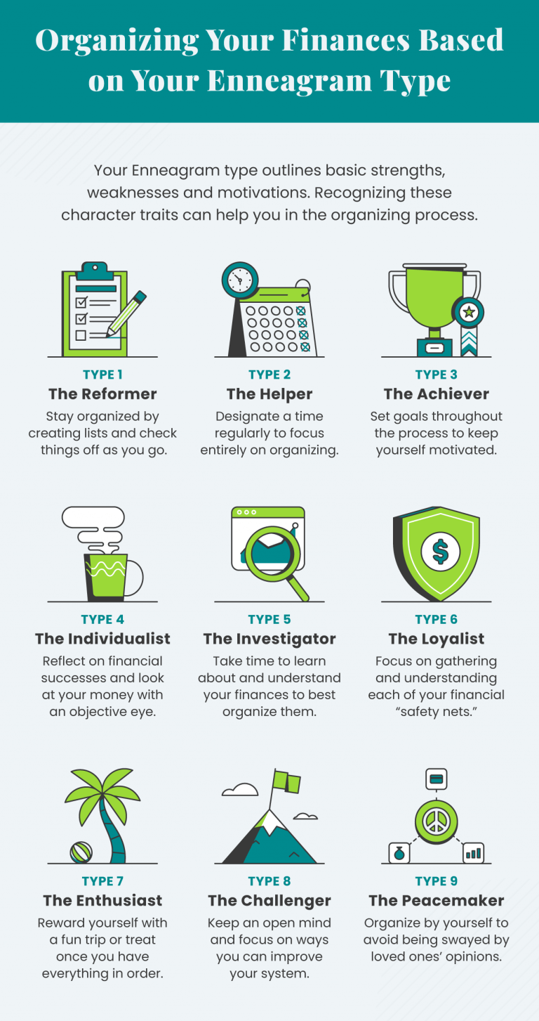 Everyone has their own organizing tricks: some are more systematic, while others embrace chaos. Consider how you sort through other aspects of your life and what works for you. These methods can also be applied when you work on getting your finances in order.