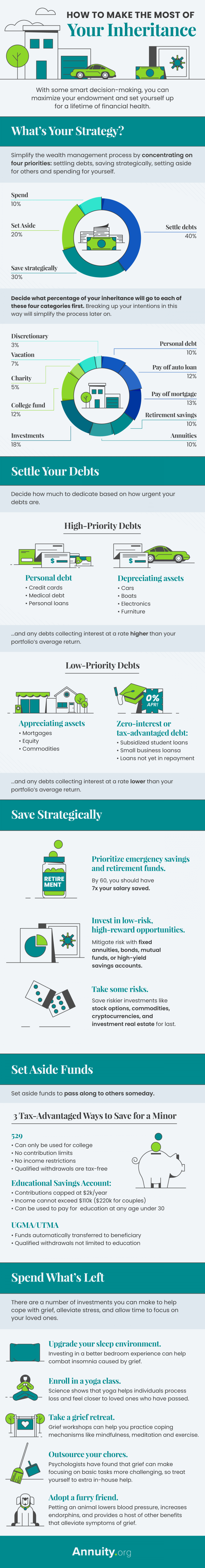 How you use your inheritance will vary depending on how much progress you’ve already made on goals like paying down debt and saving for retirement.